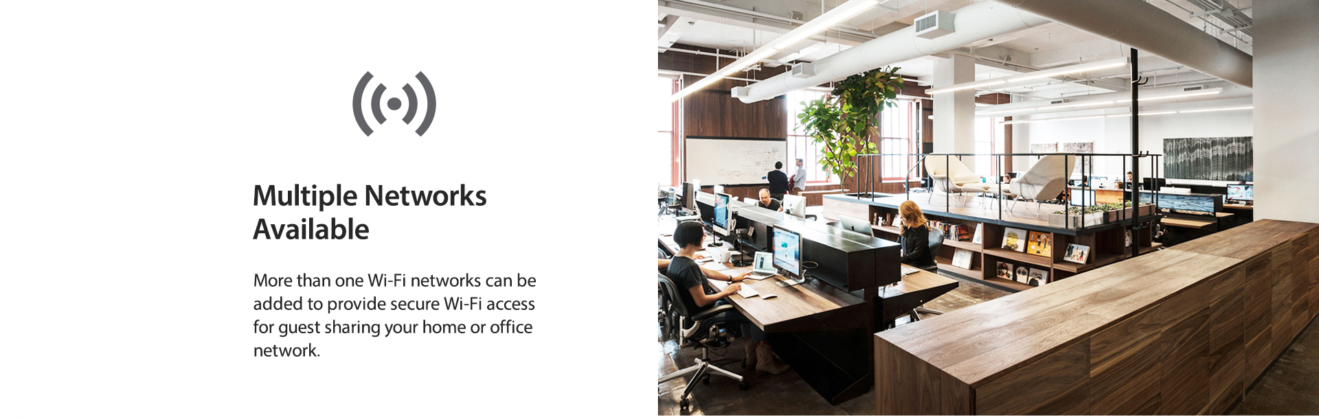 More than one Wi-Fi networks can be added to provide secure Wi-Fi access for guest sharing your home or office network.