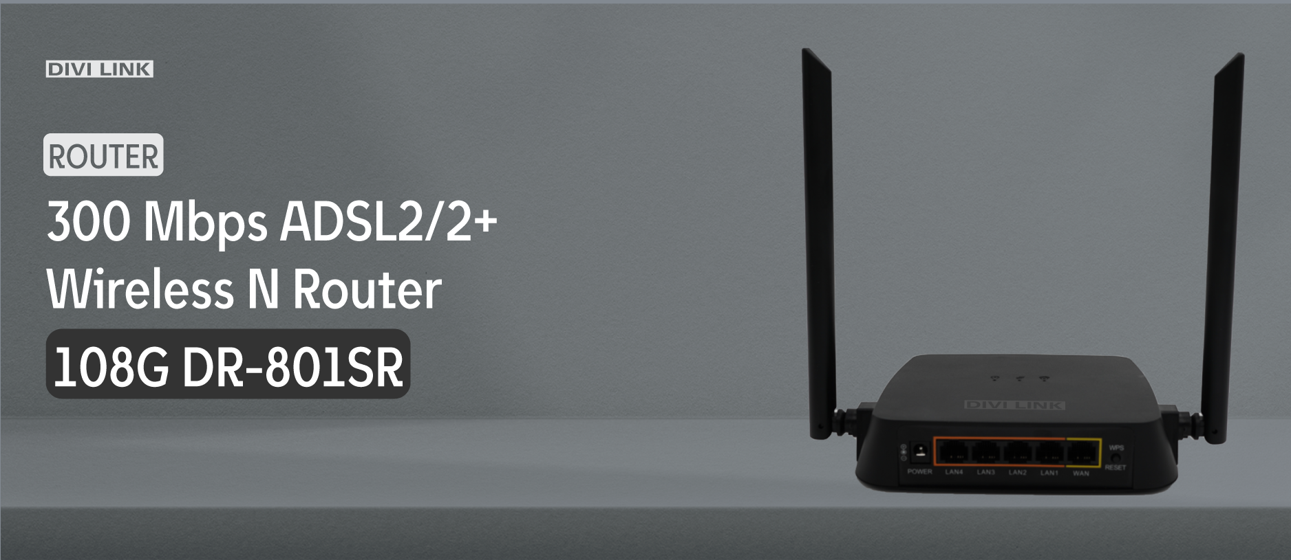 108G DR-801SR is a wireless ADSL modem router which integrates the functions of high speed ADSL modem, wireless router and 4-port switch into one. Complying with the IEEE 802.11n standard, ND300 delivers up to 300Mbps Wi-Fi speed with stable connection.