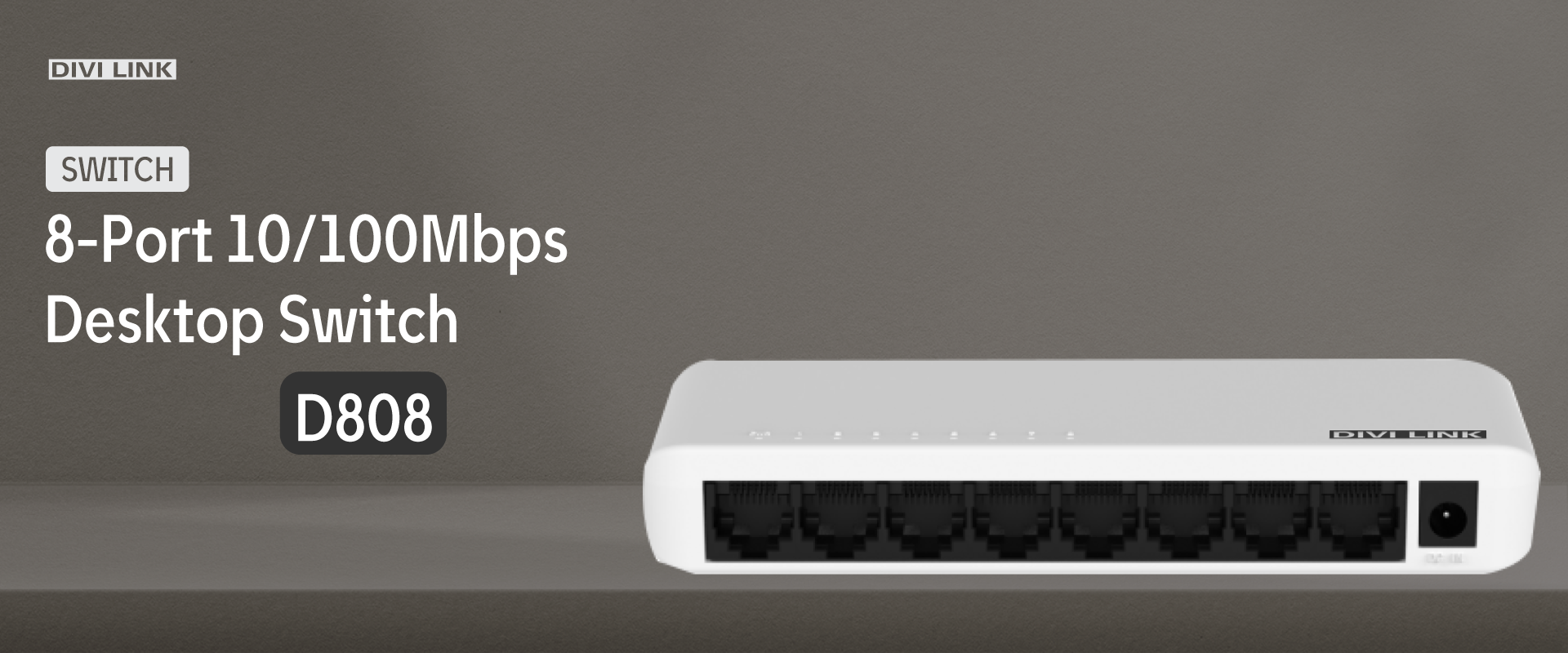 D808 is a Fast Ethernet Switch that designed for general home or small office use.